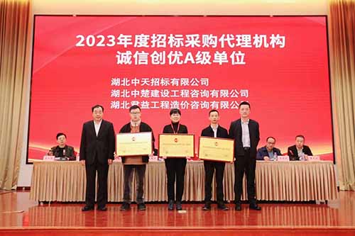 我司在湖北省招标投标协会组织的“2023年度湖北省招标采购代理机构诚信创优评级"活动中,获得了"